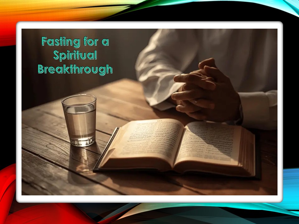 “Fasting for a Breakthrough” teaches that fasting is a biblical way to quiet our hearts, humble our souls, and make room to hear God’s voice—bringing revelation, deliverance, protection, repentance, and spiritual strength to those who hunger and thirst for Him.